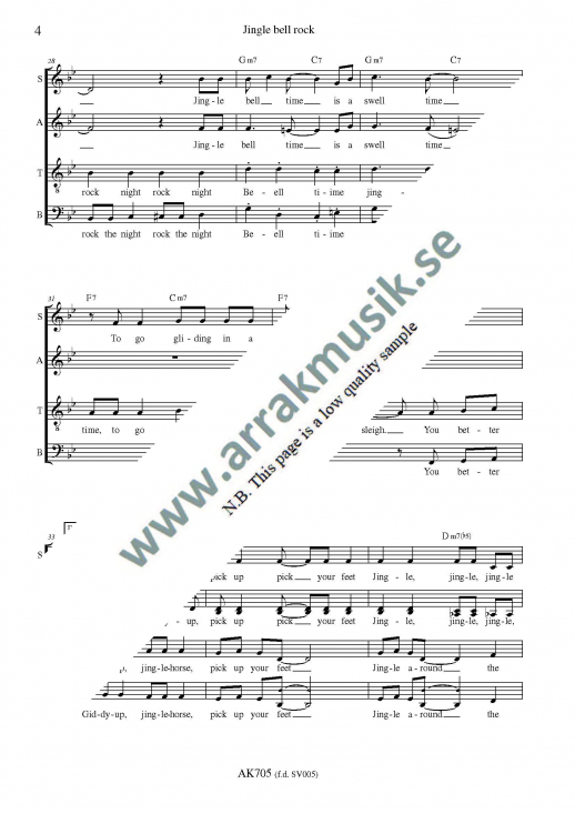 SATB divisi + komp. Svårighetsgrad 3 (medelsvår). Art.nr. AK705 (tidigare SV005). Fyra sidor.