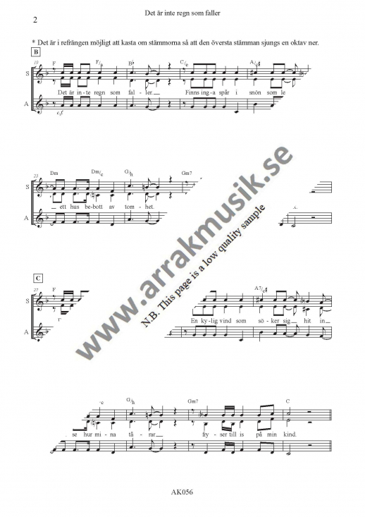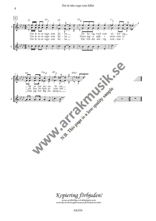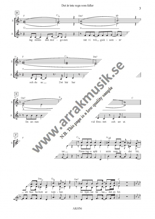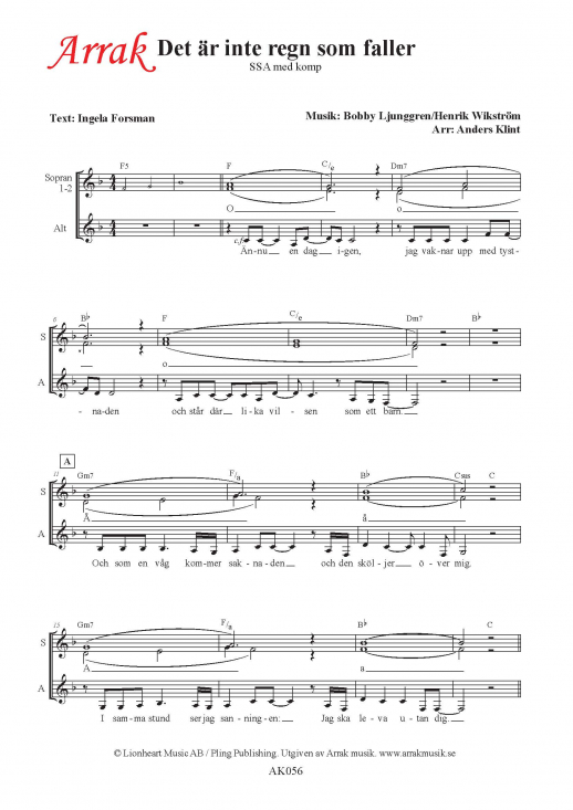 Sonja Aldéns hit av Bobby Ljunggren, Henrik Wikström och Ingela Forsman. Finns även för blandad kör.