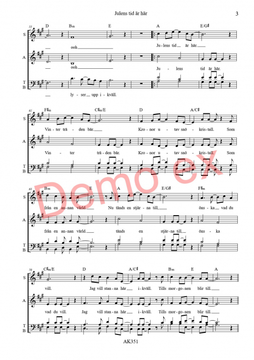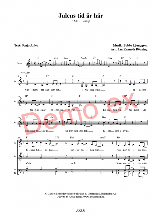 SATB + komp. Svårighetsgrad 2 (ganska enkel). AK351. Fyra sidor.